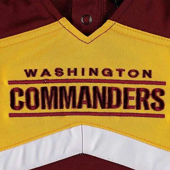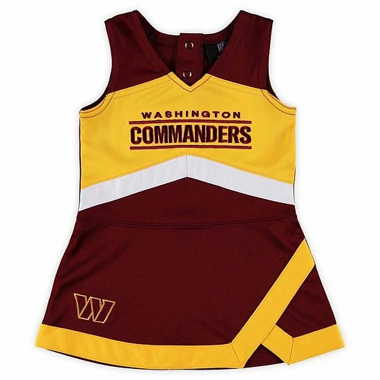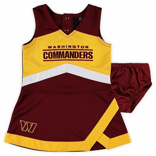 It’s never too early to be a dedicated Washington Commanders fan, and this Cheer Captain set is the perfect way to get your little one started. Featuring a stylish dress and bloomers, this set has eye-catching Washington Commanders graphics for an adorable game day getup. Plus, the elastic features on the bloomers and snap closures on the dress allow for quick and easy dressing.
