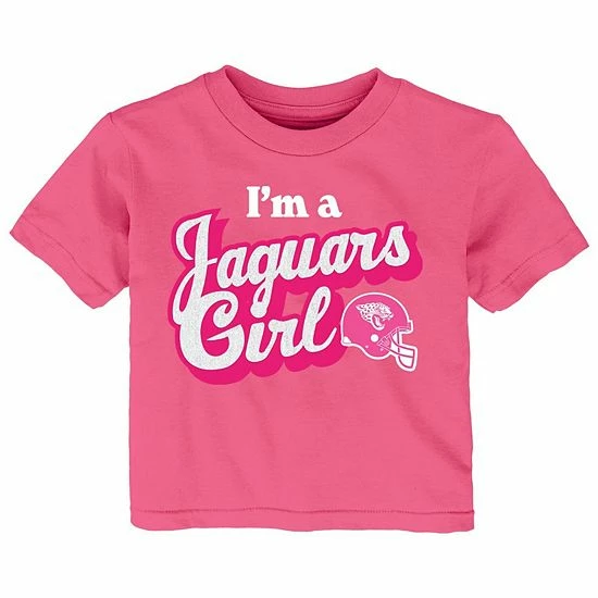 Ensure everyone knows which team your little one is cheering for on game day by grabbing this Jacksonville Jaguars Team Girl T-shirt. With its bright, sparkly graphics, this tee has team spirits in spades. Your bundle of joy will be seen as the true Jaguars girl they are when in this tee.