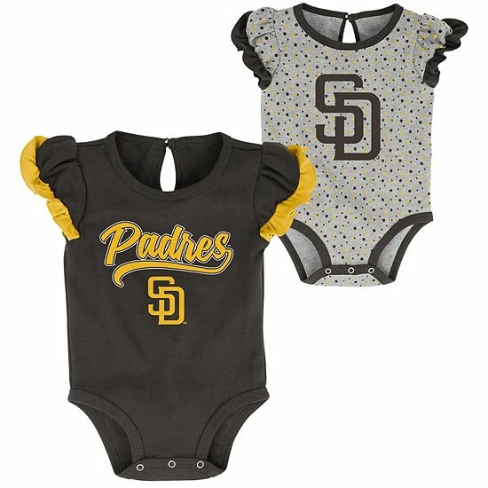 Everyone will Scream and Shout when they see your little one in one of these adorable San Diego Padres bodysuits. This two-pack set features two one-pieces, both with charming San Diego Padres graphics and cute ruffled sleeves. Plus, the three-snap bottom closure allows for quick and easy dressing.