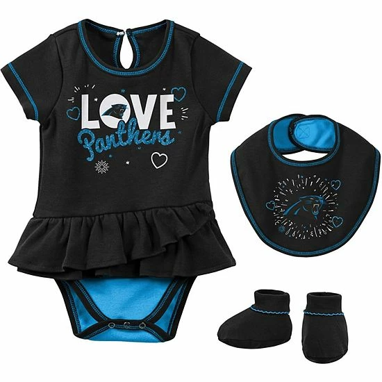 This Play Your Best bodysuit, bib and booties set is absolutely perfect for introducing the newest member of your family to the Carolina Panthers. The bodysuit features distinct team graphics, as well as three snaps on the bottom, which will make dressing a breeze. The booties will also keep your youngster’s feet nice and warm, and the bib will fit snugly around their neck when it’s time to eat.