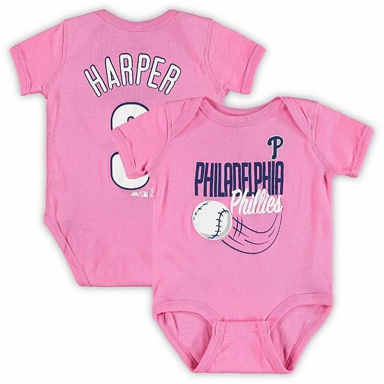 Your young fan will immediately be a part of the Philadelphia Phillies family when they have this Bryce Harper Baby Slugger Name and Number bodysuit. Featuring crisp team graphics, this piece of gear will help your kiddo show some love for one of the game’s most talented players as he and the rest of the Philadelphia Phillies work hard for a win.