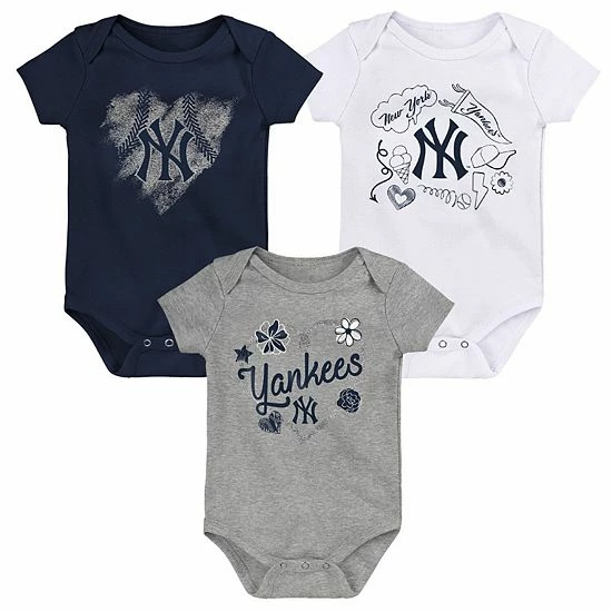 Show everyone which ball club your little fan cheers for with these New York Yankees Batter Up bodysuits. This three-pack set features the official New York Yankees logo in a cute design printed across the front. The lap shoulder neckline and snaps also help make dressing quicker and easier.