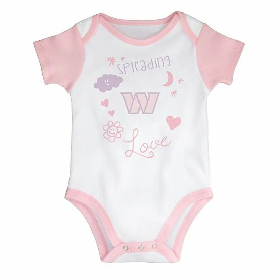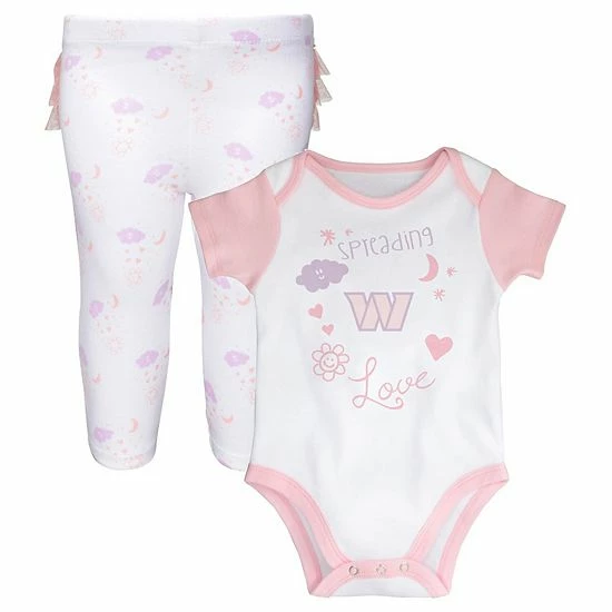 Encourage cheerful Washington Commanders spirit with this Spreading Love bodysuit and leggings set. It features the Washington Commanders logo printed in colors matching the cute pattern on the front and all over the bottoms. The attached tutu adds a fun finishing touch.