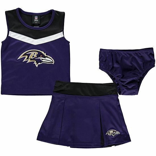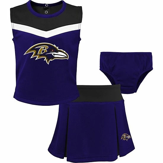 Your little one can fire up the crowd like a real Baltimore Ravens cheerleader with this Two-Piece Spirit Cheer Cheerleader set with bloomers.