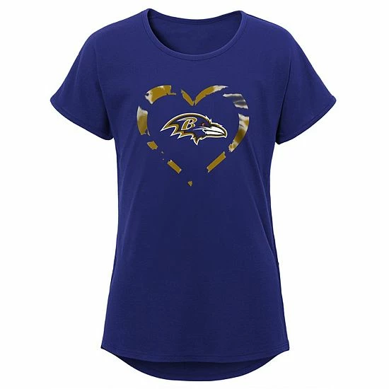 This Baltimore Ravens T-shirt offers your young fan a cute take on their team gear. The classic crew design and soft material pair for a tee that’s as stylish as it is comfy. Plus, the charming Baltimore Ravens graphics with a heart tie-dye design make for a one-of-a-kind look.