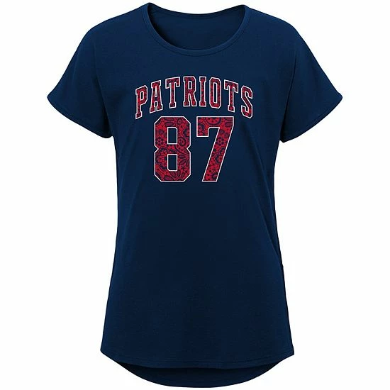 Your kiddo’s love for the New England Patriots will only continue to grow when you grab this Rob Gronkowski Dolman Lace Player Name and Number T-shirt.