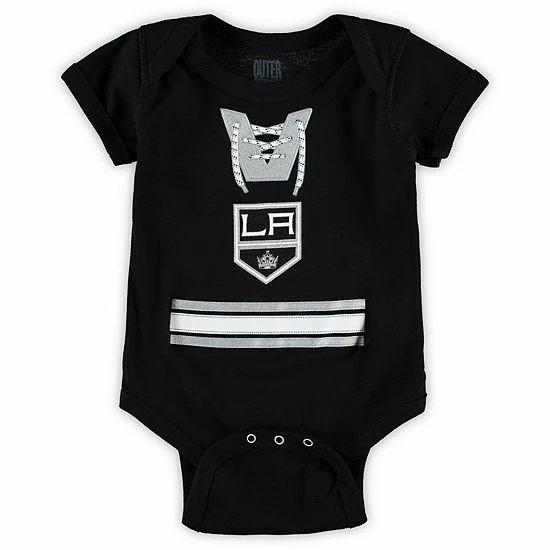 Share your passion for the Los Angeles Kings right from the start with this Mock Jersey Stripes bodysuit. Its printed graphics feature a faux lace-up design and the Los Angeles Kings logo. The lap shoulder neckline and bottom snaps help make dressing an easy score, as well.