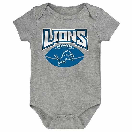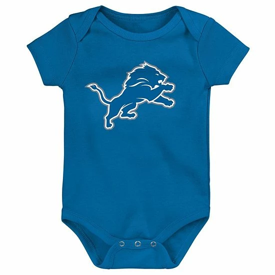 Keep your little Detroit Lions fan geared up for the season with these Game On bodysuits. This three-pack set features authentic Detroit Lions graphics printed on comfy fabric. The lap shoulder neckline and snaps also help make dressing easier and faster.