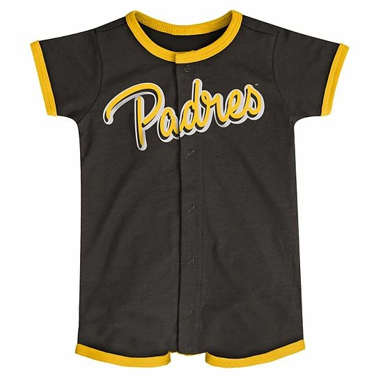 Your little one is ready to play any position with this charming San Diego Padres romper. This Power Hitter piece features a charming San Diego Padres design and contrast-color trim for an adorable getup. The full-button front allows for a quick and easy game day outfit.
