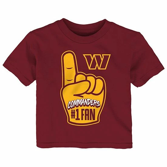 Get your little Washington Commanders supporter fired up for the next game with this Hand-Off T-shirt. Its printed graphics feature the official Washington Commanders logo and a fan-favorite souvenir. The soft material also feels comfortable to wear all day.