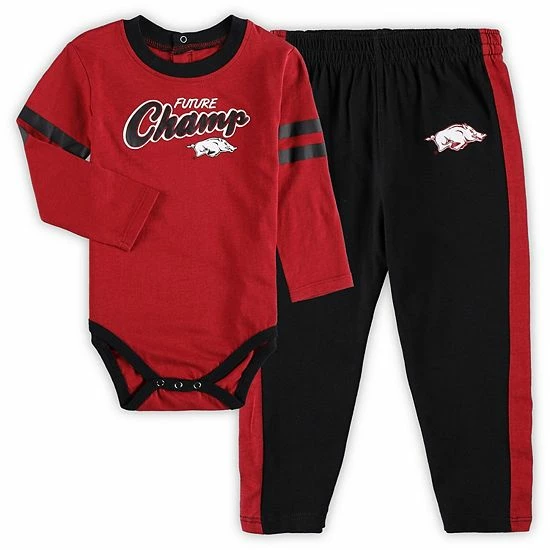 Ensure your little Arkansas Razorbacks fan is the most spirited supporter around with this Little Kicker set. This two-piece set features a long sleeve bodysuit and sweatpants with complementary Arkansas Razorbacks graphics and colors. The long sleeves offer added coverage, while the bottoms will complete your youngster’s game day look, leaving no doubt that they’re a devout fan in the making.