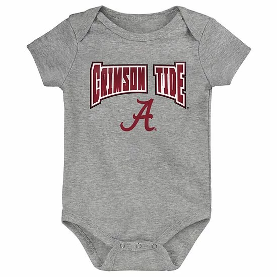 Share your Alabama Crimson Tide fandom with the next generation by grabbing these Game On bodysuits. This three-pack set features the official Alabama Crimson Tide logo and adorable team graphics. The lap shoulder neckline and three snaps also help make for easier dressing.