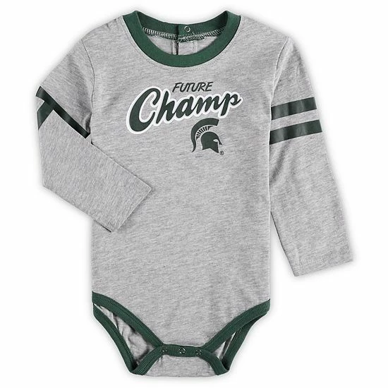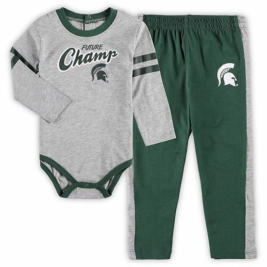 Ensure your little Michigan State Spartans fan is the most spirited supporter around with this Little Kicker set. This two-piece set features a long sleeve bodysuit and sweatpants with complementary Michigan State Spartans graphics and colors. The long sleeves offer added coverage, while the bottoms will complete your youngster’s game day look, leaving no doubt that they’re a devout fan in the making.