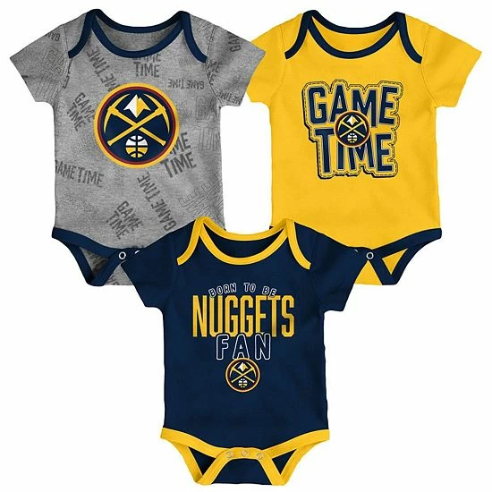 Get your little one started on the path to lifelong Denver Nuggets fandom with this Game Time three-piece set. These adorable bodysuits feature three snaps at the bottom and a lap shoulder neckline to make dressing as convenient as possible. It’s always game time when your little Denver Nuggets fan is ready to go in one of these spirited bodysuits.