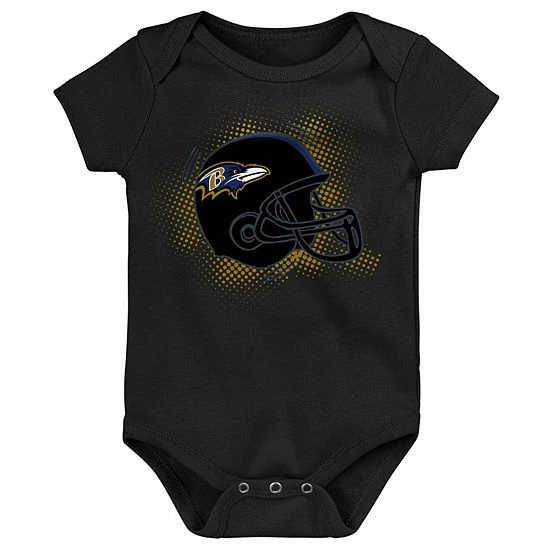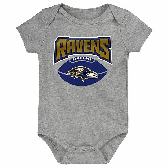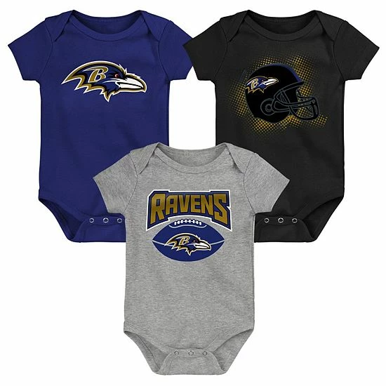 Keep your little Baltimore Ravens fan geared up for the season with these Game On bodysuits. This three-pack set features authentic Baltimore Ravens graphics printed on comfy fabric. The lap shoulder neckline and snaps also help make dressing easier and faster.
