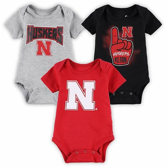Share your Nebraska Huskers fandom with the next generation by grabbing these Game On bodysuits. This three-pack set features the official Nebraska Huskers logo and adorable team graphics. The lap shoulder neckline and three snaps also help make for easier dressing.