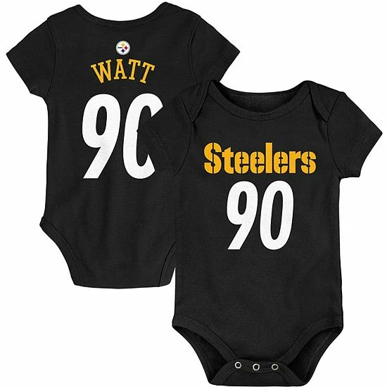 Make sure the newest member of Steelers nation is prepared for kickoff with this T.J. Watt Mainline bodysuit. It features bold player name and number graphics on both sides so your little one can match your support for the Pittsburgh Steelers. Along with a lap shoulder neckline, the three-snap closure at the bottom helps provide a comfy fit and easy dressing throughout the day.