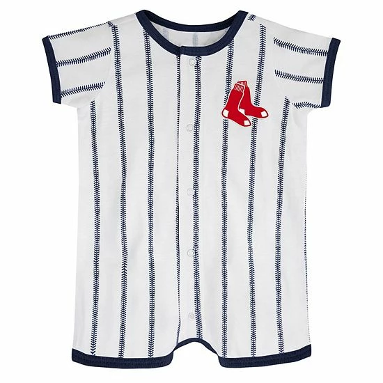 Get your little slugger’s wardrobe ready for the Boston Red Sox season by grabbing this Pinstripe Power Hitter romper. It features contrast-color trim that coordinates with the embroidered Boston Red Sox logo. Snaps all down the front also make dressing much easier.