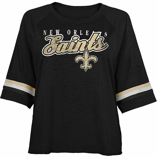 Give your young New Orleans Saints fan that game ready look they’ve been wanting with this Burnout Half-sleeve T-shirt. Its vintage-style New Orleans Saints graphics and team-colored stripes will keep their fandom in full notice, while the raglan construction of this relaxed tee grants more room to cheer during every big play.