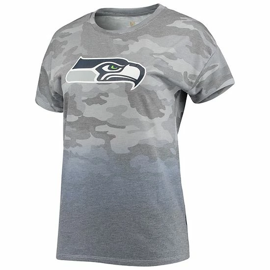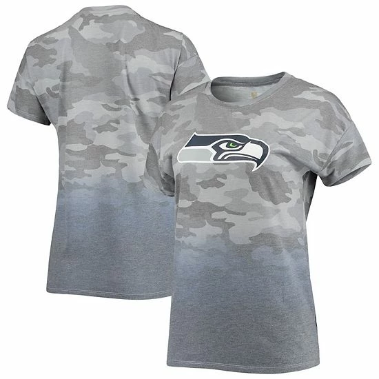 Create a fun, stylish Seattle Seahawks outfit with this Beth Dip-Dye T-shirt. It features the Seattle Seahawks logo printed across the front and a splash of team color at the bottom. Plus, an allover camo pattern gives this attention-grabbing tee a trendy look.