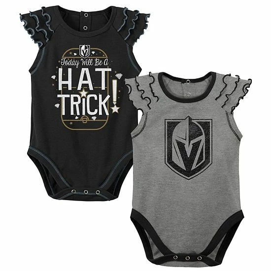 Get the youngest Vegas Golden Knights fan in the family geared up with this Shining All-Star bodysuit set. This set features two bodysuits with fun team graphics and ruffled details. The snap closures make these Vegas Golden Knights bodysuits easy to slip on and off so you don’t miss a second of the on-ice action.