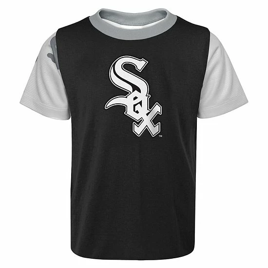 Get your little one ready to sprint onto the diamond and hit it out of the park with this fresh Chicago White Sox set. This Pinch Hitter outfit includes a T-shirt and shorts, both with sleek Chicago White Sox graphics. The top also features a sublimated camo design, and the shorts have an elastic waistband for a comfy, customized fit, making for a bonafide ballpark get-up.