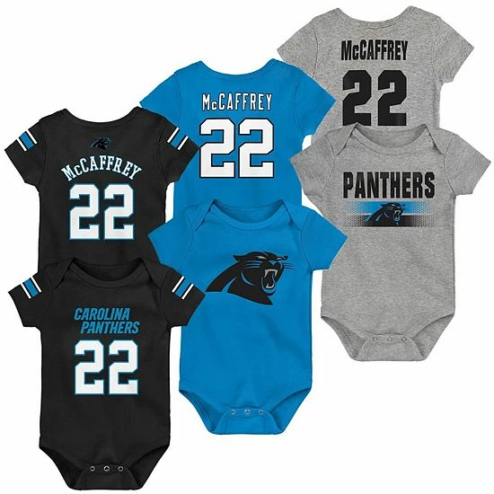 Your littlest Carolina Panthers fan is ready to join your squad. Get your newest member geared up with this Christian McCaffrey Name & Number three-pack bodysuit set. With three different designs featuring Christian McCaffrey’s name and number, these Carolina Panthers bodysuits will have your young one ready for game day.