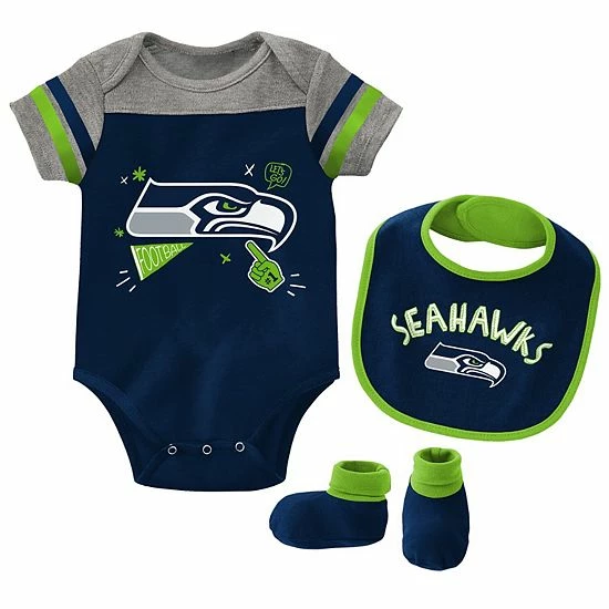 In your household, every member of the family cheers for the Seattle Seahawks. This football season, allow the youngest member of the clan to join in on the action by ordering them this Seattle Seahawks Tackle bodysuit, bib and booties set. Once your little one gets dressed up in this special outfit, it’ll be very easy to spot the cutest fan in the franchise.