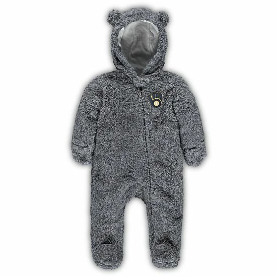 Inspire sweet dreams of Milwaukee Brewers victories with this Game Nap Teddy Fleece Bunting sleeper. It features an embroidered Milwaukee Brewers logo and adorable faux ears. Fold-over mittens also keep baby hands warm throughout the night.