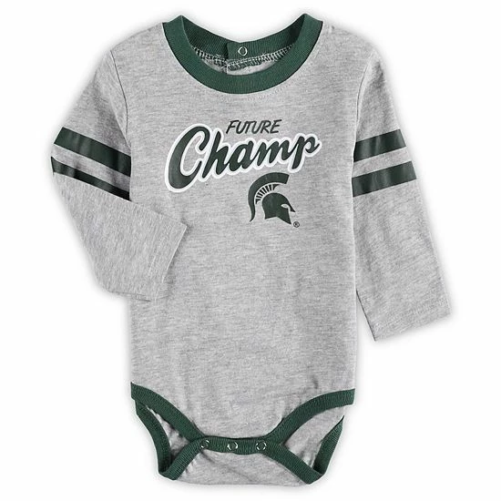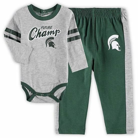 Ensure your little Michigan State Spartans fan is the most spirited supporter around with this Little Kicker set. This two-piece set features a long sleeve bodysuit and sweatpants with complementary Michigan State Spartans graphics and colors. The long sleeves offer added coverage, while the bottoms will complete your youngster’s game day look, leaving no doubt that they’re a devout fan in the making.