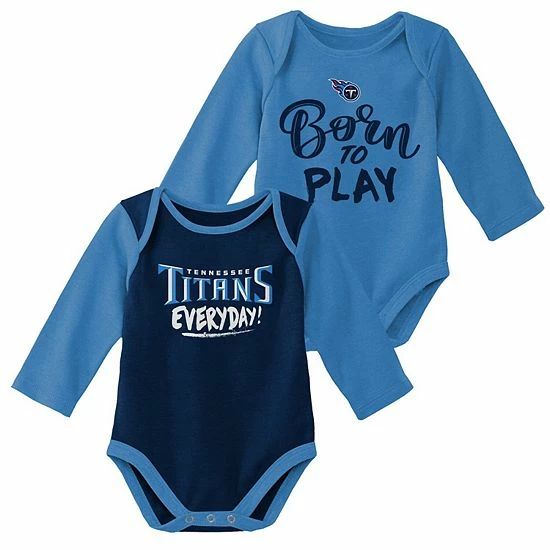 Your newest tiny Tennessee Titans supporter will look like part of the fan club in one of these adorable Little Player bodysuits. This two-pack set features printed Tennessee Titans graphics with a spirited saying. The snaps and lap shoulder neckline also make dressing a breeze.