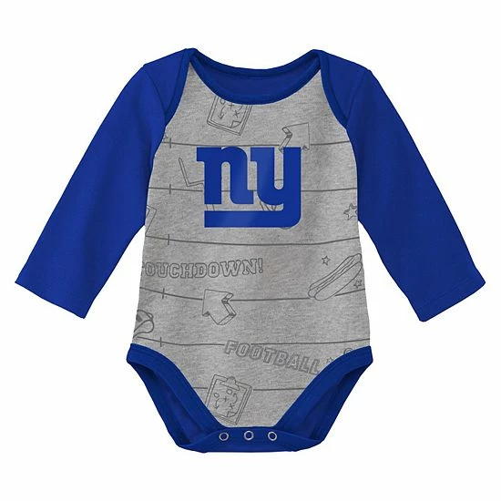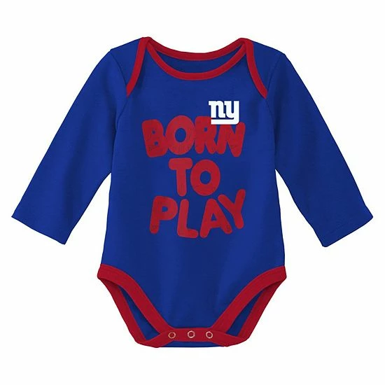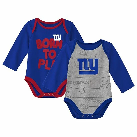 Get your tiny New York Giants supporter to look like part of the fan club in one of these adorable Born to Play bodysuits. This two-pack set features printed New York Giants graphics with a spirited saying. The three-snap bottom and lap shoulder neckline also make dressing a breeze.