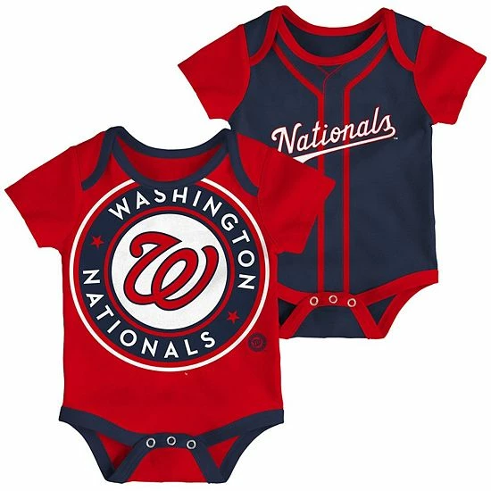 Your little one looks ready to take the pitcher’s mound each time they wear one of these adorable Washington Nationals bodysuits. This Double set features two one-pieces-one fan design and one Washington Nationals jersey design with charming contrast-color trim. A lap shoulder neckline and three-snap bottoms closure make dressing a breeze for an easy and cute game day outfit.