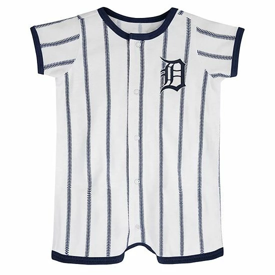 Your little one looks ready to take the pitcher’s mound each time they wear this adorable Power Hitter jumper. It’s styled as a distinct Detroit Tigers jersey, and features a charming baseball seam design and contrast-color trim. The full-button front allows for a quick and easy game day outfit.