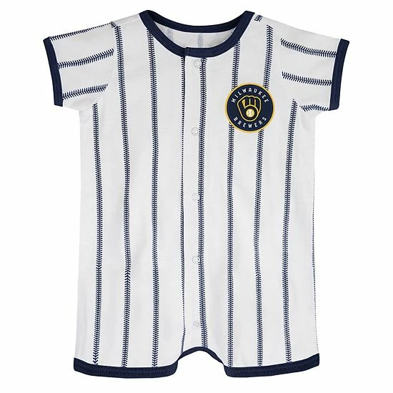 Your little one looks ready to take the pitcher’s mound each time they wear this adorable Power Hitter jumper. It’s styled as a distinct Milwaukee Brewers jersey, and features a charming baseball seam design and contrast-color trim. The full-button front allows for a quick and easy game day outfit.