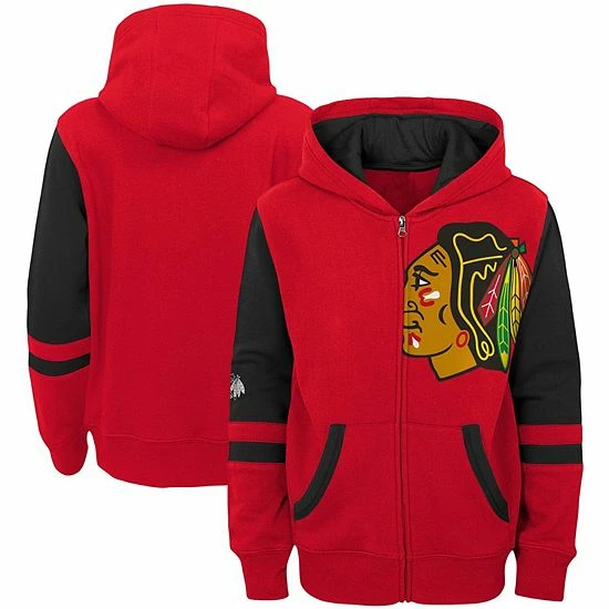 Your young one loves the Chicago Blackhawks and needs more gear to show it! Add this Faceoff fleece full-zip jacket to their collection, and they’re sure to proudly display their team pride while staying warm and cozy on game day. It features two front pockets, a spacious hood and bold Chicago Blackhawks graphics that will make their pride clear.