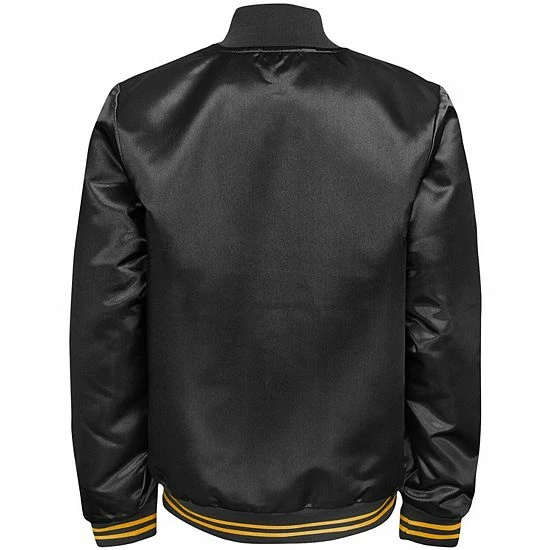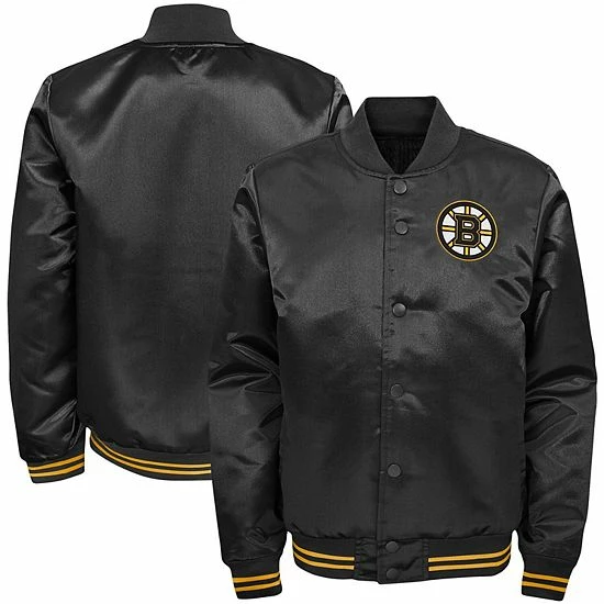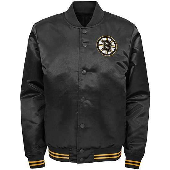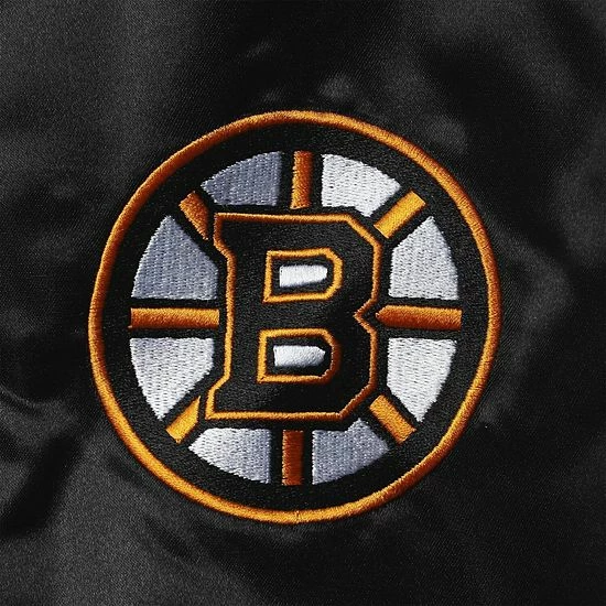 This Gifted Goalie varsity jacket is a stylish choice for representing the Boston Bruins. It features a vintage full-snap design with quilted lining for added softness and an embroidered Boston Bruins logo. There are also multiple pockets to store essential items while on the go.