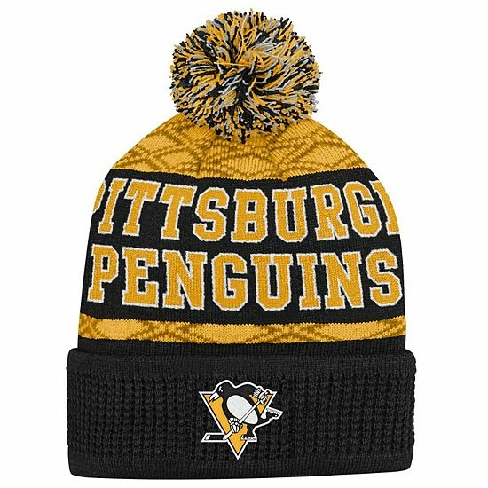 When temperatures begin to drop, keep your kiddo toasty warm and ready to cheer on the Pittsburgh Penguins with this Puck Pattern cuffed knit hat with pom! Decked out in team colors, it not only features crisp Pittsburgh Penguins graphics, but it also has a great design all over.