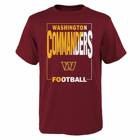 Keep your young Washington Commanders fan geared up for game day with this Coin Toss T-shirt. It features the official Washington Commanders logo printed below the team name in a two-tone, slashed design. The comfortable fabric also makes this tee a go-to choice for everyday wear.