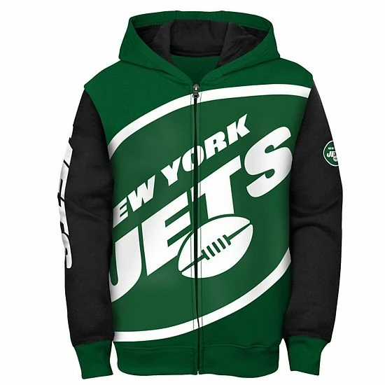 Bring attention to budding New York Jets fandom with this Poster Board hoodie. An emphatic team logo covers the front, while the full-zip closure helps mask chilly weather. There’s no better way for your kiddo to display their New York Jets affection than with this cozy midweight jacket.
