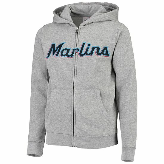 The youngster in your life loves to watch the Miami Marlins dominate at the ballpark. Help your kiddo express their unwavering devotion by grabbing this Miami Marlins Wordmark full-zip hoodie. It features bold Miami Marlins graphics across the front, while the super soft fabric will ensure your young fan stays warm cheering on the team to victory.