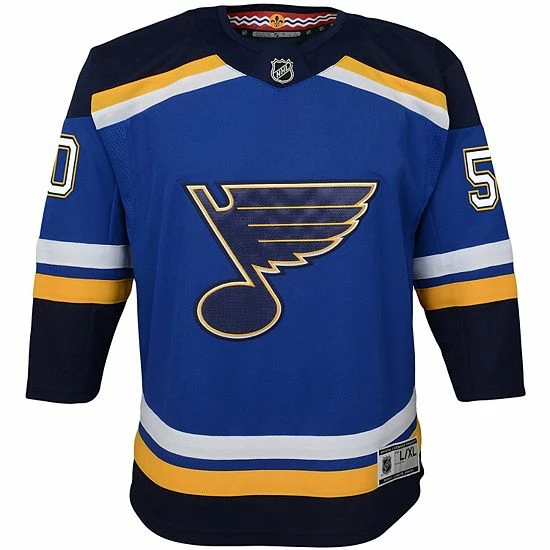 Showcase your youngster’s one-of-a-kind swagger and budding hockey fandom with this St. Louis Blues Jordan Binnington Premier Player jersey. This piece of gear is just what your kiddo needs for their game day collection. This unique jersey will be a staple in your young fan’s St. Louis Blues wardrobe, with its bold design and crisp team graphics.