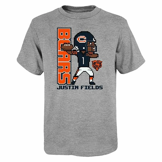 Your kiddo can easily show off their loyalty to the Chicago Bears when this Pixel Player 2.0 T-shirt is part of their wardrobe. A pixelated caricature of Justin Fields is printed on heathered fabric for an all-around homage to their favorite player. Plus, the blended fabric and tagless collar make this Chicago Bears top extra comfortable.