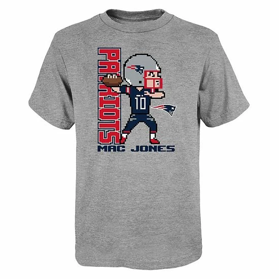 Your kiddo can easily show off their loyalty to the New England Patriots when this Pixel Player 2.0 T-shirt is part of their wardrobe. A pixelated caricature of Mac Jones is printed on heathered fabric for an all-around homage to their favorite player. Plus, the blended fabric and tagless collar make this New England Patriots top extra comfortable.