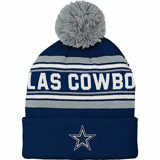 Help your youngster get ready for game day with this Dallas Cowboys Jacquard cuffed knit hat with pom. Its soft material is perfect for keeping warm when the temperatures drop. Not to mention the embroidered graphics on the cuff show off their rapidly growing fandom.