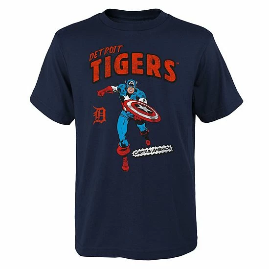 Combine your kiddo’s love for Captain America and their favorite squad with this Detroit Tigers Marvel T-shirt. It provides the ultimate casual feel with its classic crew design and soft fabric. Bold, spirited graphics give your young fan’s game day outfit a fun flair.