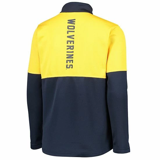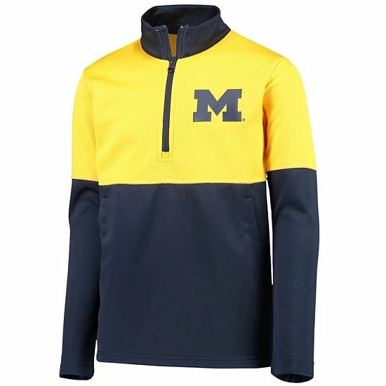 Get your young fan ready to layer up with their Michigan Wolverines pride in this Quick Snap Spine Print quarter-zip jacket. With its eye-catching, two-tone design and matching Michigan Wolverines graphics, they’ll stand out as a bona fide fan.