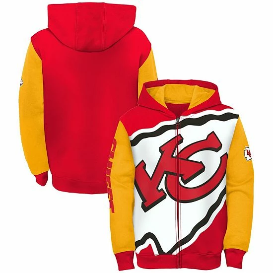 Bring attention to budding Kansas City Chiefs fandom with this Poster Board hoodie. An emphatic team logo covers the front, while the full-zip closure helps mask chilly weather. There’s no better way for your kiddo to display their Kansas City Chiefs affection than with this cozy midweight jacket.