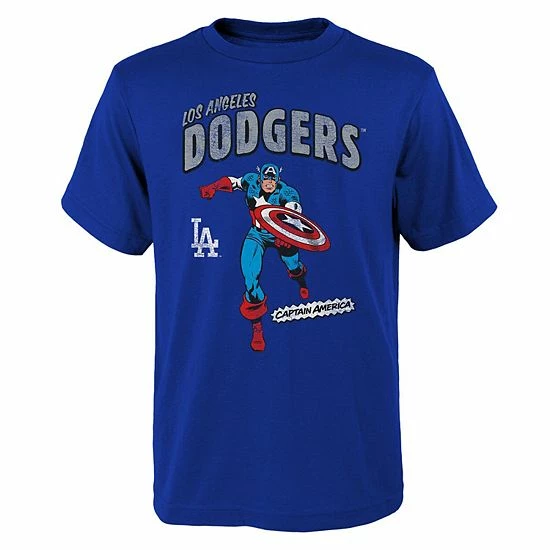 Combine your kiddo’s love for Captain America and their favorite squad with this Los Angeles Dodgers Marvel T-shirt. It provides the ultimate casual feel with its classic crew design and soft fabric. Bold, spirited graphics give your young fan’s game day outfit a fun flair.