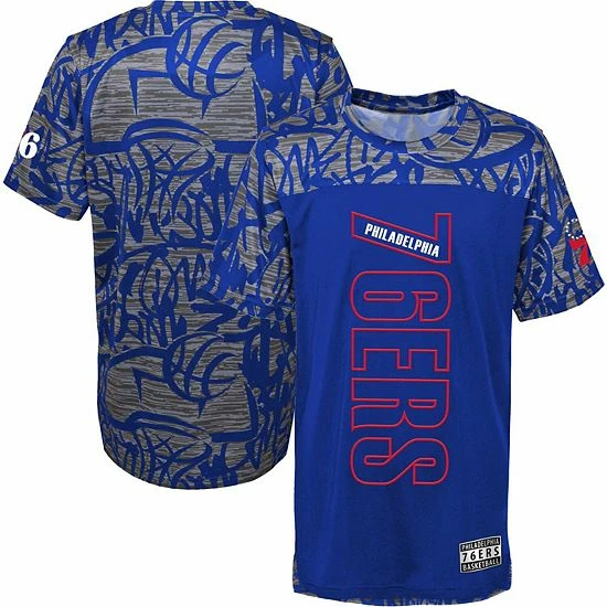 Give your young Philadelphia 76ers fan a must-have piece of gear with this Court Mural T-shirt. It features bold team graphics on the front and a street-inspired pattern on the back. Whether cheering on the Philadelphia 76ers or hitting the court, this tee will quickly become a staple in your youngster’s wardrobe.